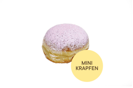 Der Kleinste unter den Krapfen mit neuem Namen. Fluffig leichter Hefeteig gefüllt mit unserer hausgemachten Erdbeermarmelade.